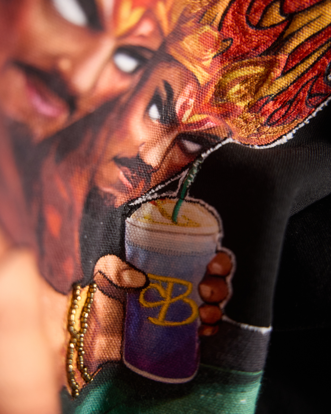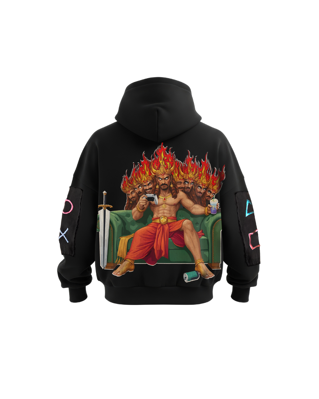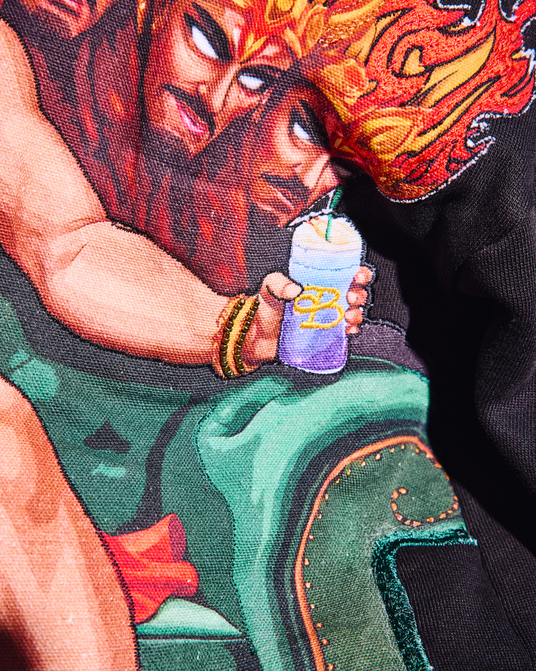 Thread-embroidered Fire patchwork on Raavan
