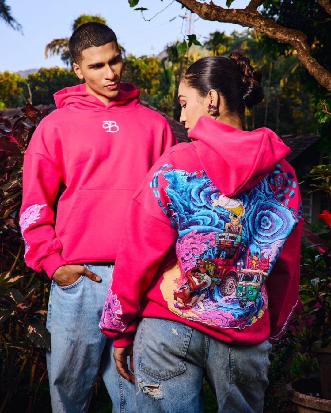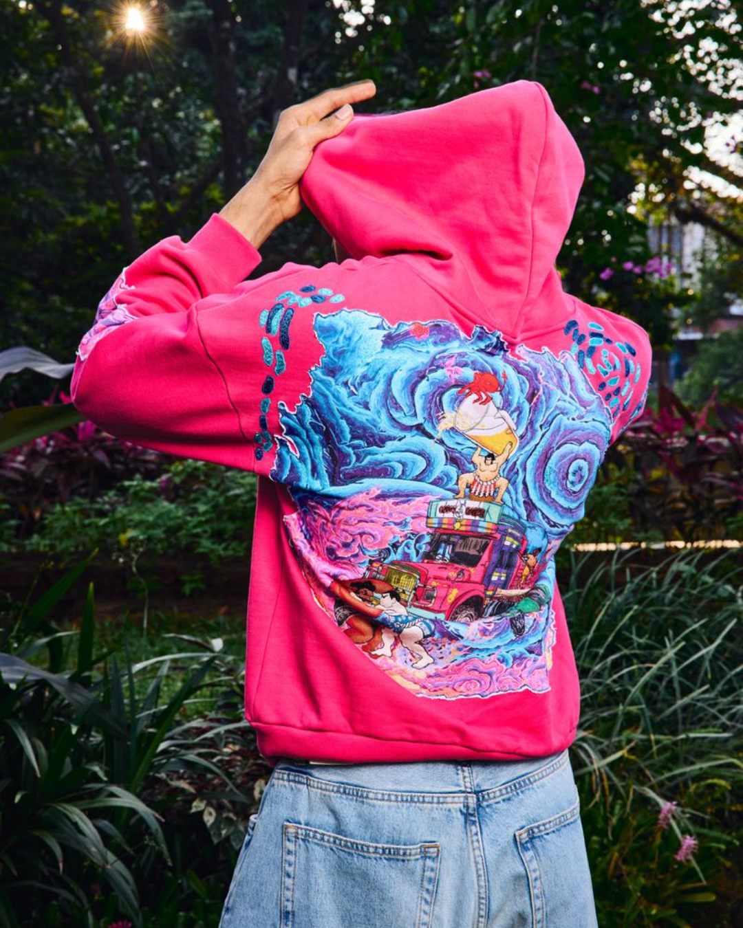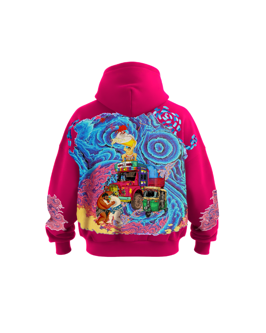 This is the second hoodie that explored the collaboration between Indian and Japanese aesthetic. As a creator, I started off with the idea of combining “ kushti “ with sumo wrestling. How would the 2 different sport interact with each other. The curiousity started out with sports and ended up in exploring different mediums such as animation , mode of transport and certain street performances.